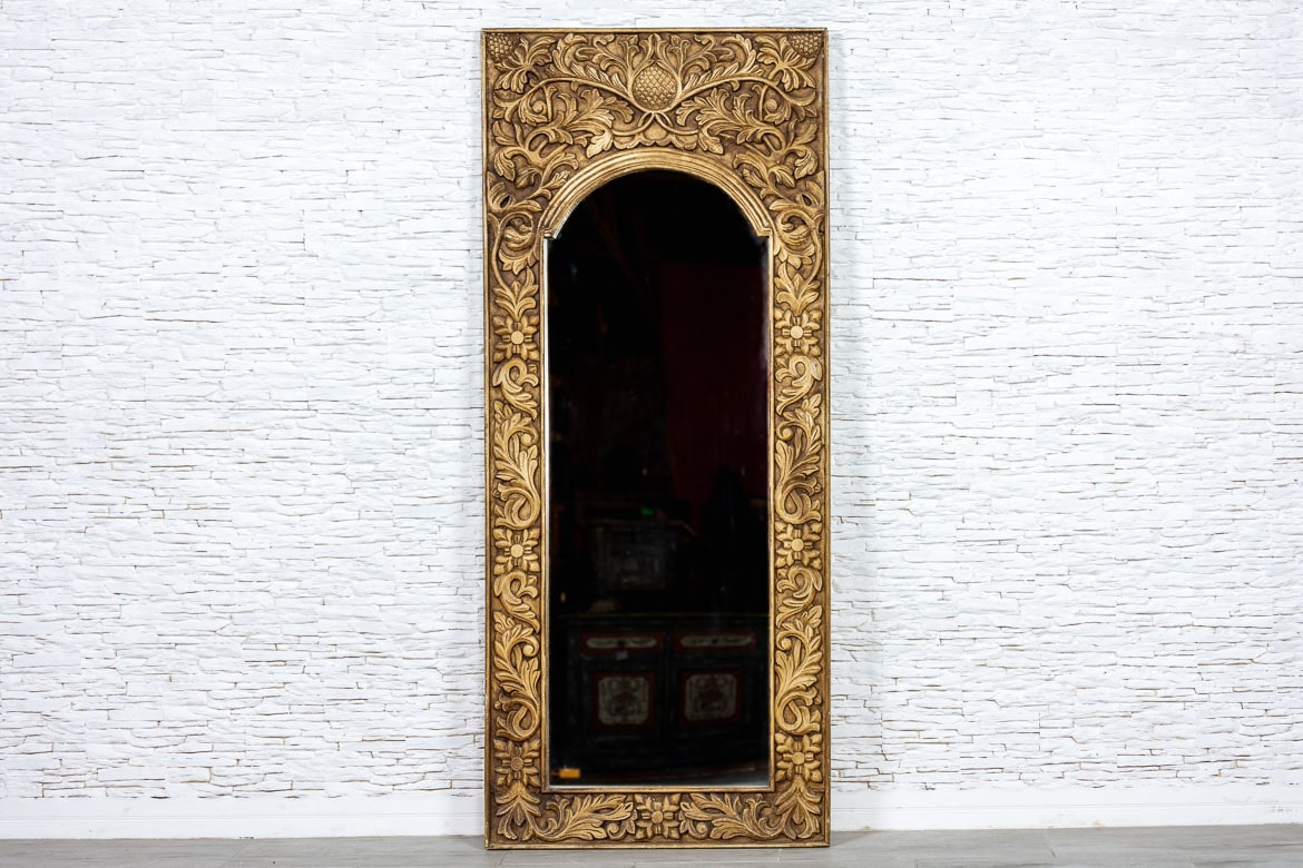 Wysokie indyjskie lustro w bogato rzeźbionej ramie