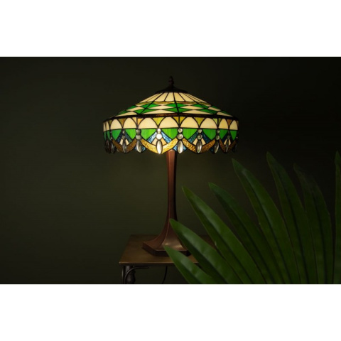 Zielona, stołowa lampa witrażowa w stylu TIFFANY od Clayre & Eef.
