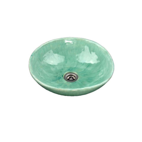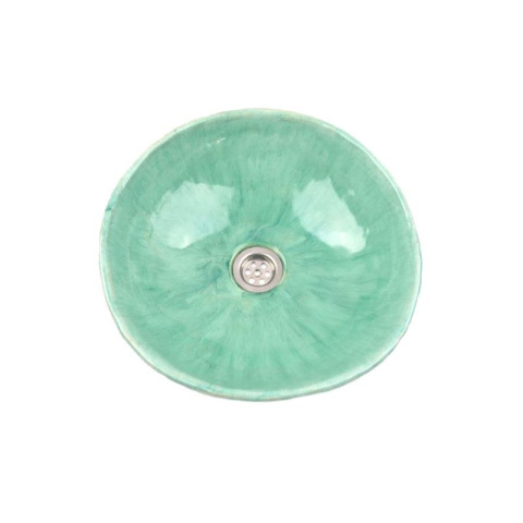 Artystyczna, ręcznie formowana miętowa umywalka z ceramiki.