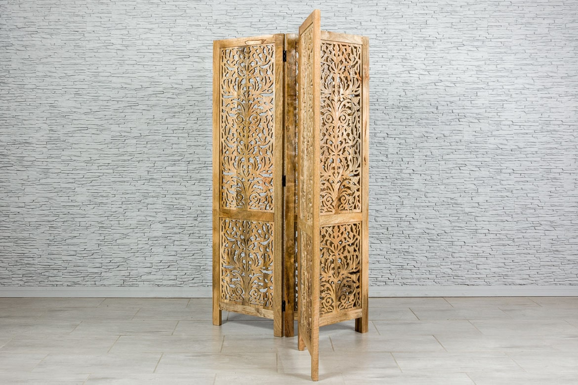 • Ażurowy rzeźbiony parawan indyjski naturalne mango