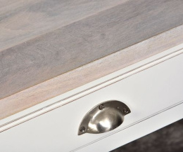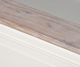 Kolekcja Bristol White zabierze Cię w podróż do słonecznej Prowansji lub do nadmorskiego Hampton. Te przepiękne bielone meble, to rozwiązanie dla osób, które cenią sobie jakość, dobry design i funkcjonalność. Meble z tej kolekcji wykonane są z połączenia litego drewna i wysokiej jakości płyty mdf. Większość modeli pomalowana została na nieśmiertelny odcień antycznej bieli, którą zestawiono z naturalnym drewnem. Meble o klasycznym, ponadczasowym kształcie, urozmaicone stylowymi detalami. Rustykalne uchwyty, ażurowe fronty stylizowane na shuttersy, ozdobne gzymsy i przetarcia w stylu retro, to elementy charakterystyczne dla tej wyjątkowej serii. W ofercie naszego sklepu znajdziesz: bielone komody z szufladami, prowansalską wyspę kuchenną, białe łóżko drewniane, wysoki regał ze schowkiem, stylowy, przeszklony kredens, czy romantyczną, bieloną witrynę na szkło. Ogromny wybór przepięknych mebli dostępnych w tej kolekcji pozwoli Ci zaaranżować wnętrze na miarę dobrego katalogu.