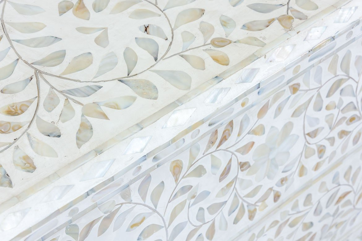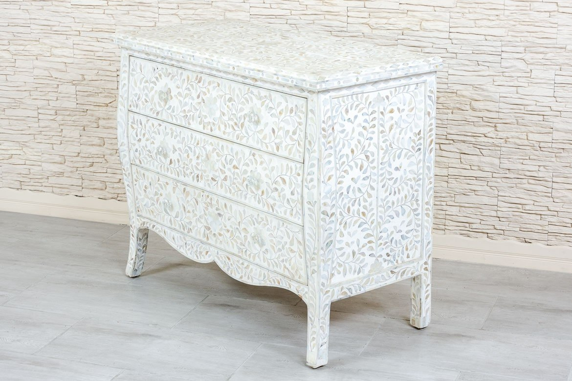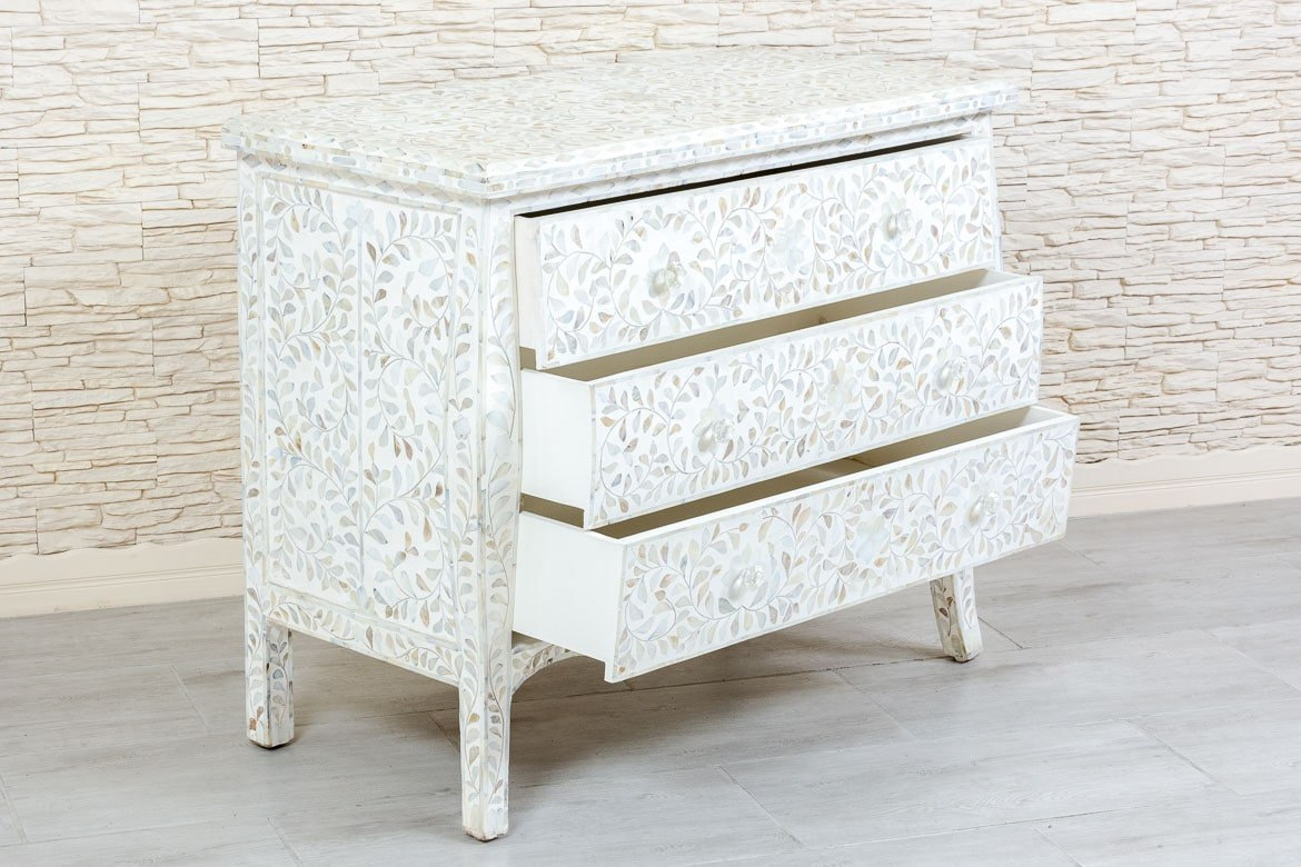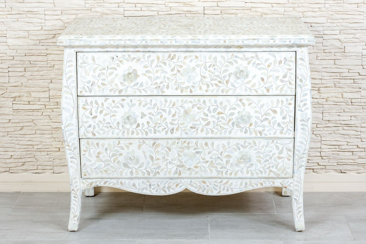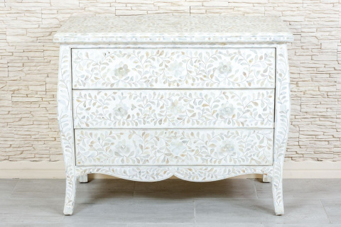 Biała elegancka komoda indyjska pokryta masą perłową