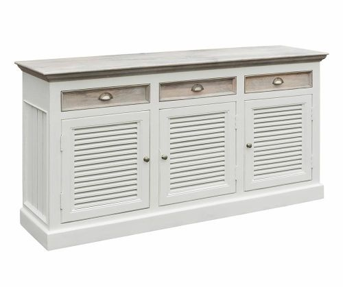 Szeroka komoda prowansalska Bristol White w odcieniu złamanej bieli od Belldeco.