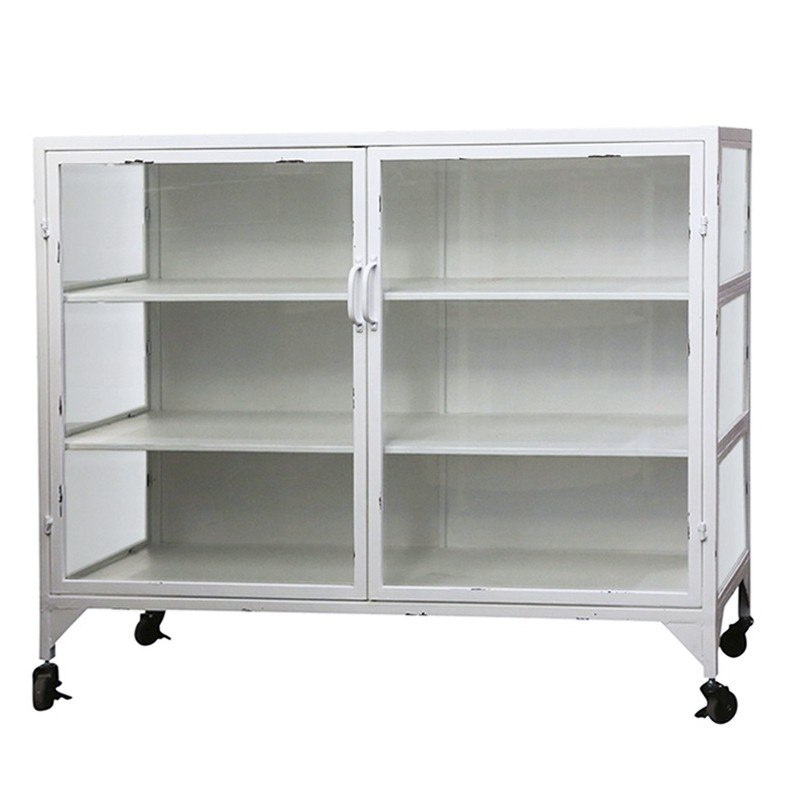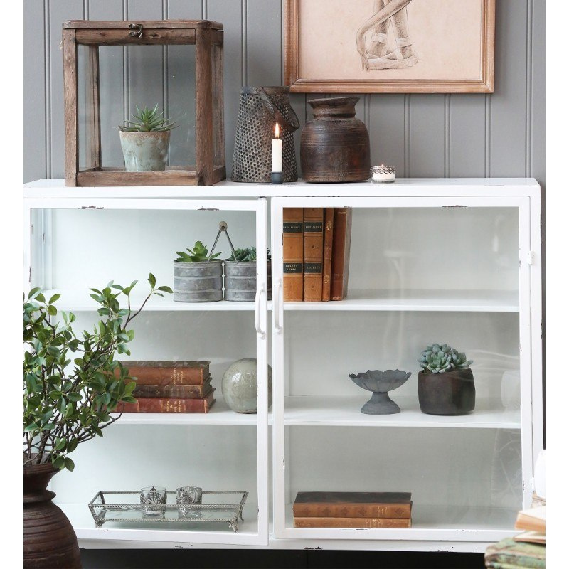• Biała metalowa przeszklona komoda Chic Antique