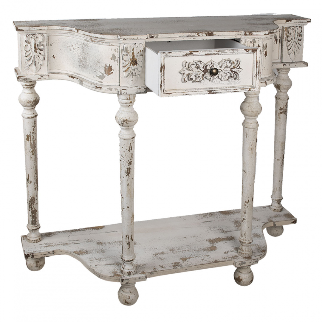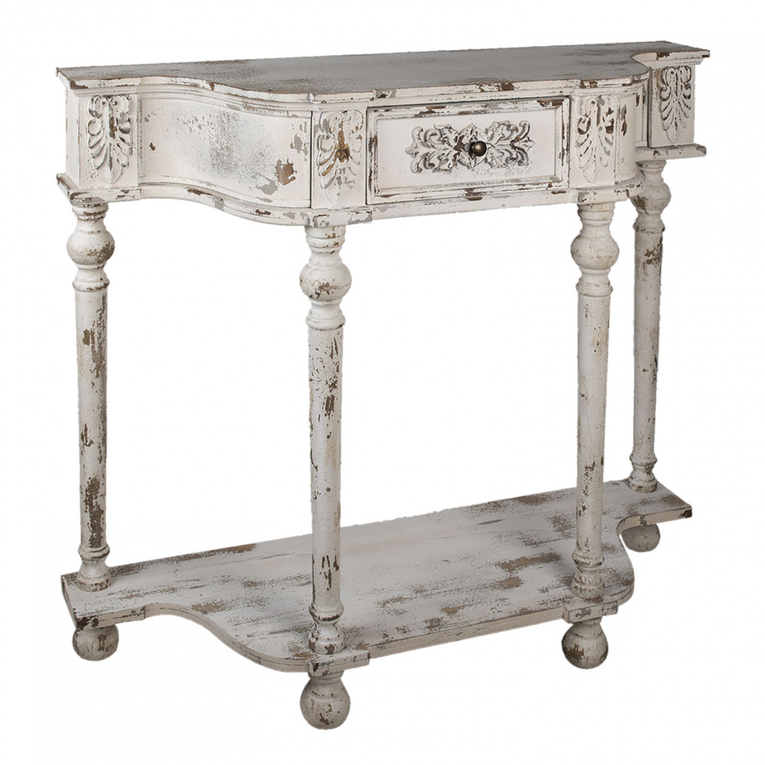 Piękna, postarzana konsola shabby chic z szufladą od Clayre & Eef.