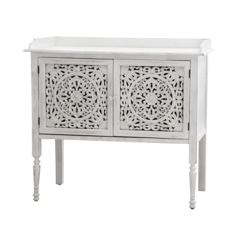 Biała szafka przecierana z rzeźbionymi drzwiczkami Chic Antique