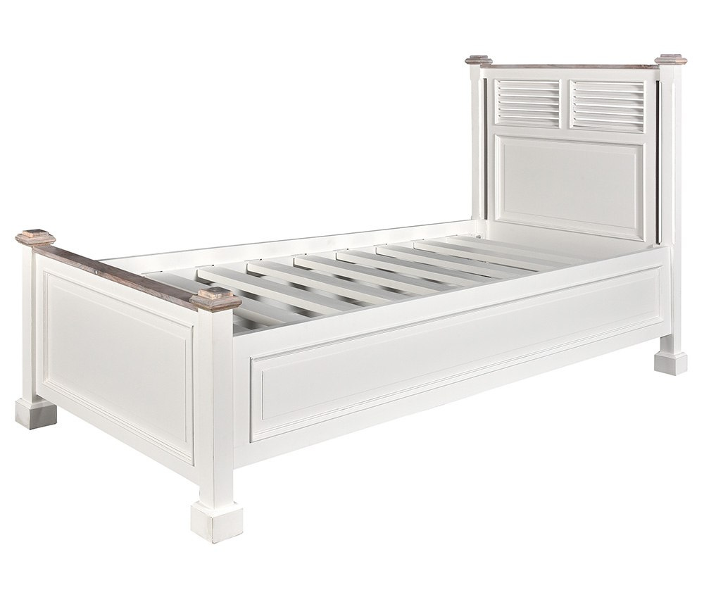 Białe, drewniane łóżko prowansalskie Bristol White od Belldeco.