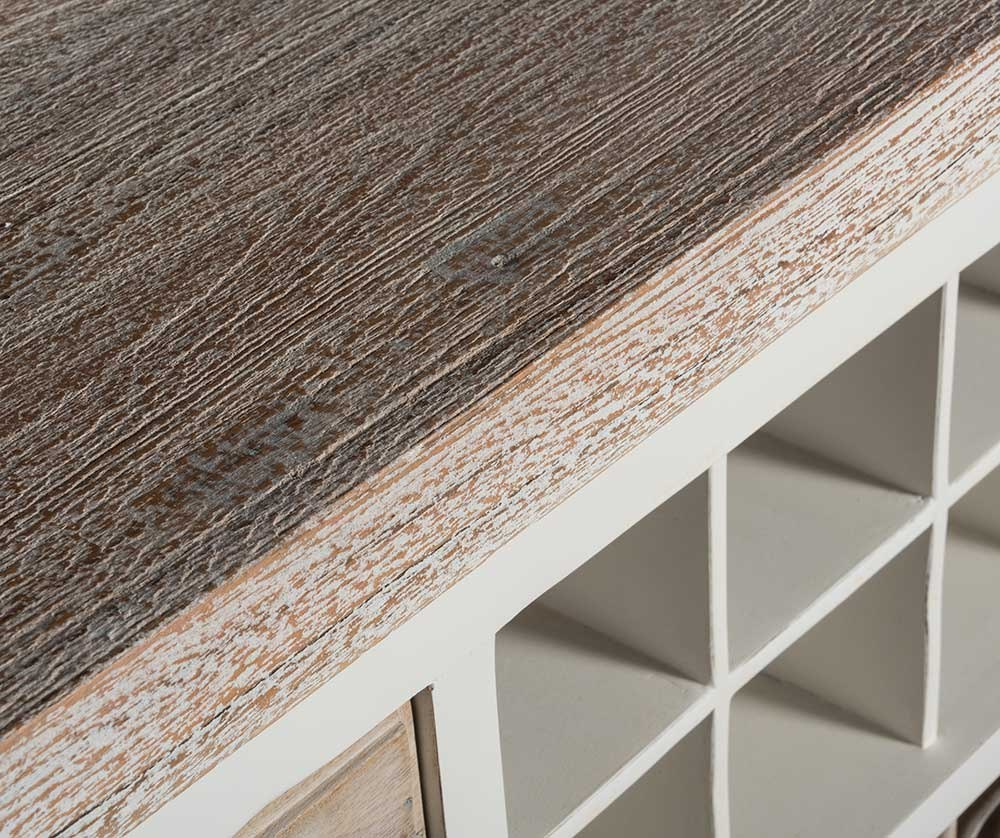 Meble z kolekcji Bristol White są meblami wykonanymi z drewna, które stanowi materiał wrażliwy na wpływ otoczenia w którym się znajduje. Meble mogą zatem posiadać szczeliny i drobne pęknięcia, będące wynikiem naturalnej “pracy” materiału, z którego zostały wykonane.