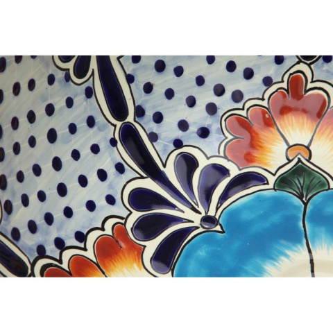 Umywalka jest wykonana w tradycyjnej technice Talavera i pochodzi z małej miejscowości Dolores Hidalgo w centralnym Meksyku. Technika Talavera charakteryzuje się bogactwem wzornictwa oraz intensywnością kolorów. Każda umywalka jest unikalna i z pewnością podkreśli wyjątkowość i styl Twojej łazienki.