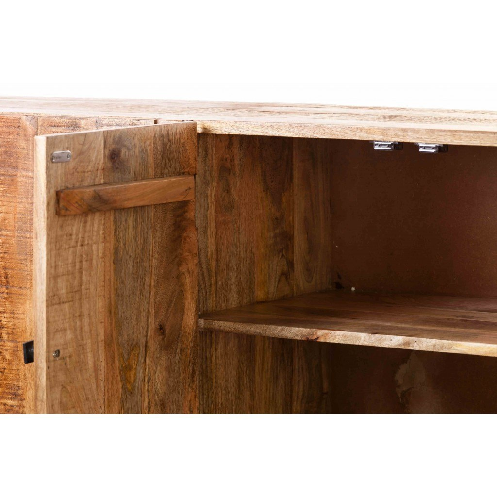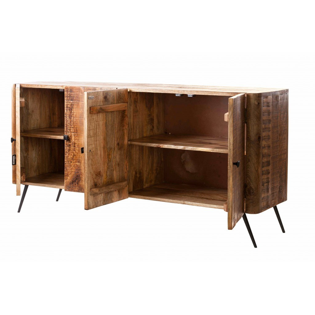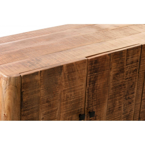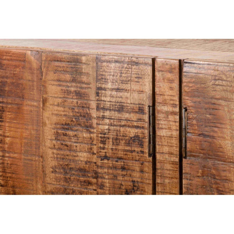 Szeroka, czterodrzwiowa drewniana komoda na metalowych nóżkach YASTI znanej marki ALURO. Ten obszerny mebel wykonano z litego drewna mangowca indyjskiego. Ma minimalistyczny design, który zmiękczono orientalnymi gałkami. Smukłe nóżki nadają lekkości szerokiej bryle. Ta niezwykle pojemna komoda, odnajdzie się w przestronnym salonie w stylu nowoczesnym. Pomieści wiele przedmiotów i nada wnętrzu indywidualnego charakteru.