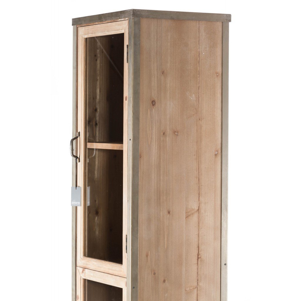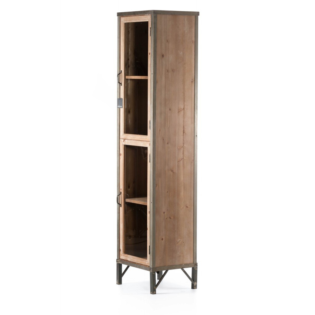 Wąska, przeszklona wysoka witryna HATTIE marki ALURO wykonana z drewna i metalu. Ma prosty, a zarazem wyrafinowany design. Surowa, stalowa konstrukcja, którą wypełniono szkłem i litą deską, zachwyca jakością wykonania i ponadczasową formą. Fronty mebla przypominają stare okna. Gięte uchwyty dopełniają wysmakowaną całość.