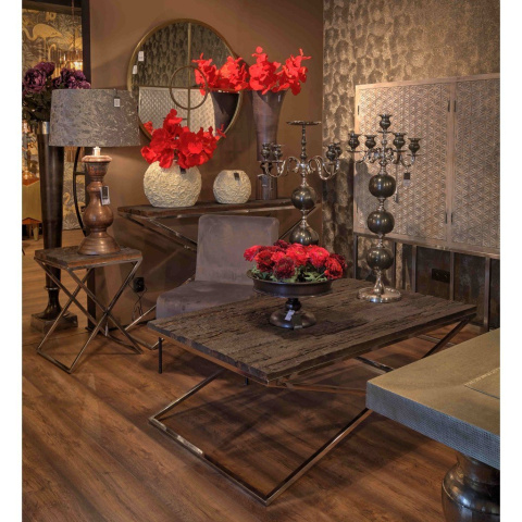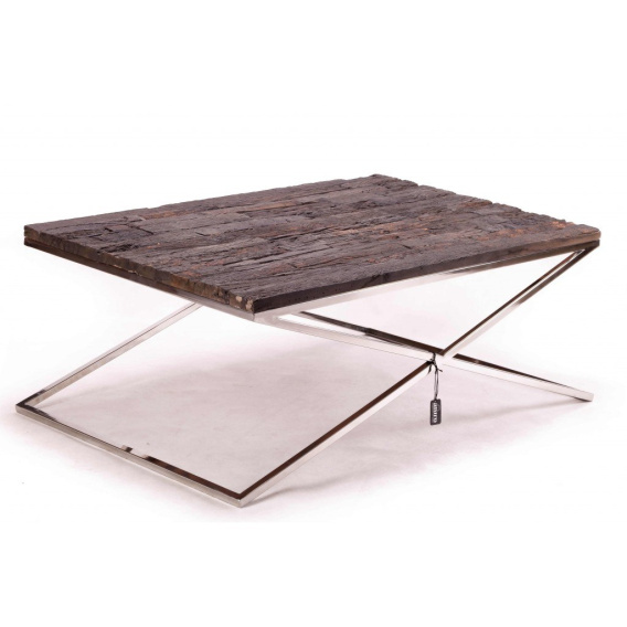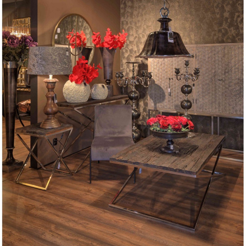 Designerska ława stolik z serii AMAX znanej marki ALURO, wykonana z drewna recyklingowego i stali nierdzewnej. Ten minimalistyczny model odnajdzie się w nowoczesnym salonie. Popękany blat z litego drewna,w połączeniu z surową, metalową konstrukcją, tworzy wyjątkową całość.