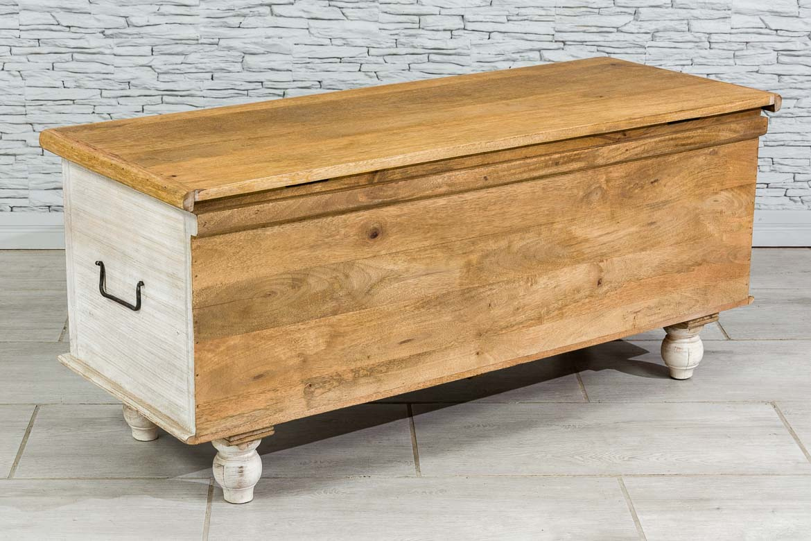 Drewniana skrzynia indyjska, bielona z drewna mango.