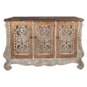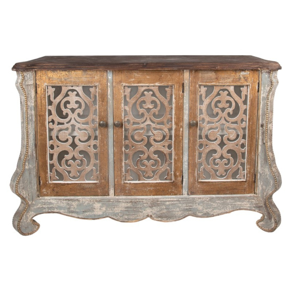 Mebel o wyjątkowym designie, który zaczaruje każde klimatyczne wnętrze. Przecierane drewno i zjawiskowe, ażurowe fronty, to połączenie idealne.