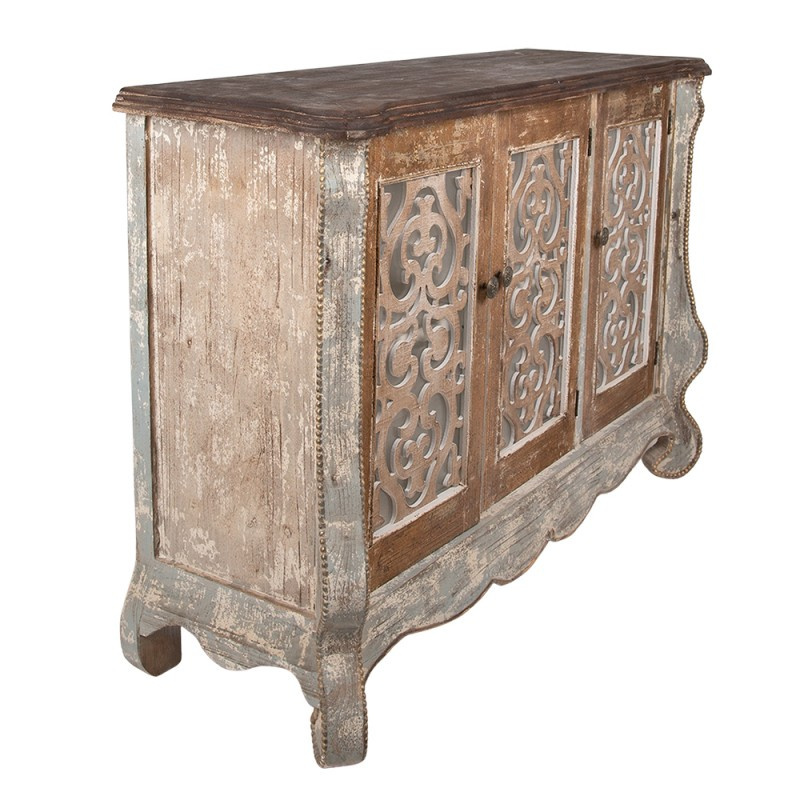 Postarzana komoda z rzeźbionymi frontami w stylu rustykalnym marki Clayre & Eef.