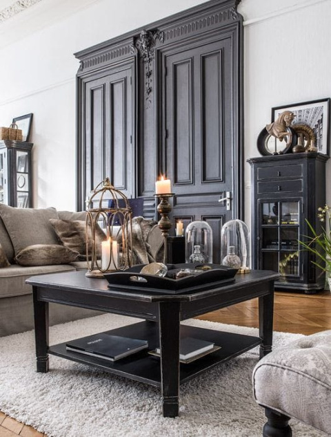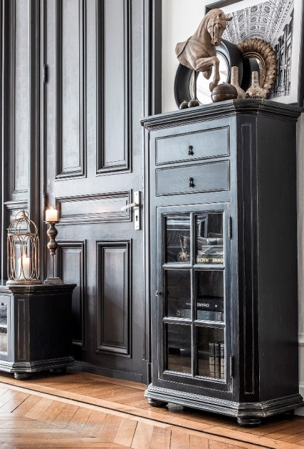 Drewniana przeszklona czarna szafka BRUGES Belldeco