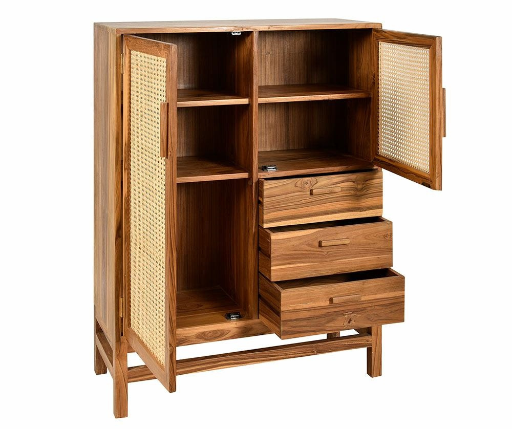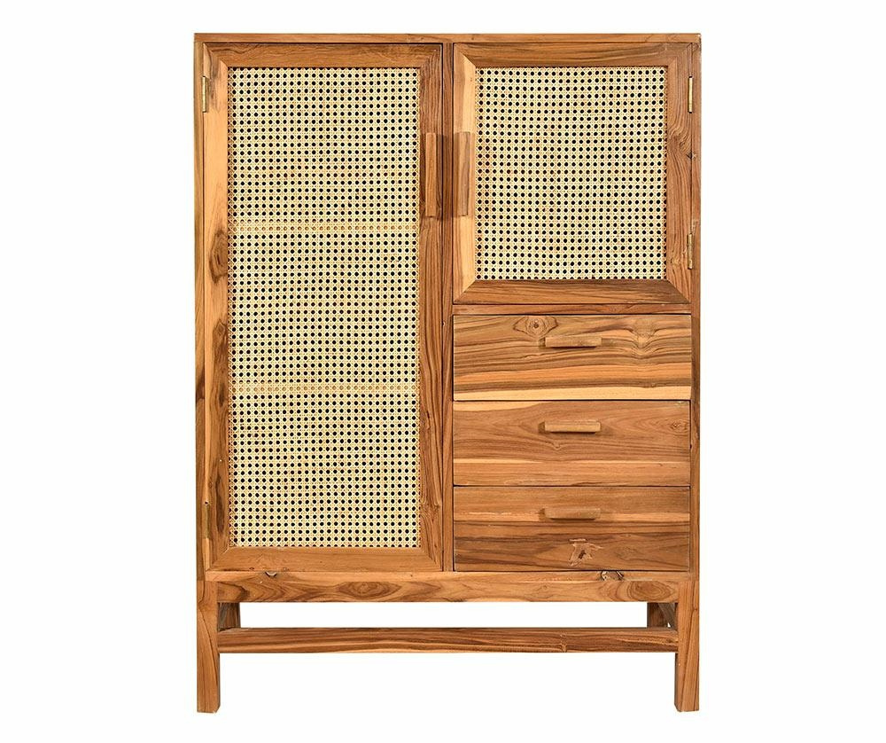 • Drewniana wysoka szafka z rattanem BARI Belldeco