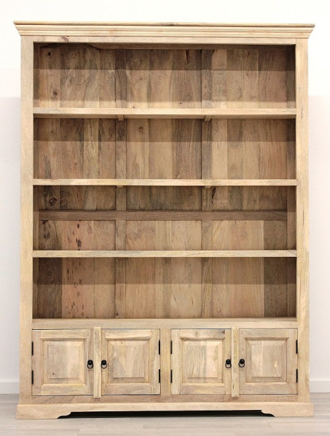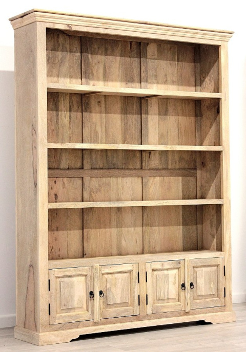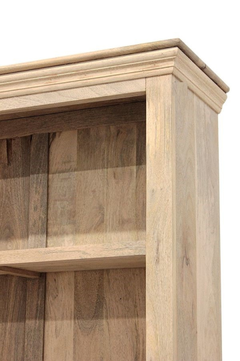 Indyjski, drewniany regał kolonialny wykonany ręcznie z grubej, litej deski mango w naturalnym kolorze.