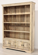 Mebel wykończony wodnym lakierem matowym, co sprawia, że przy dotyku można poczuć naturalną strukturę drewna. Ta wyjątkowa biblioteka posiada cztery obszerne półki i dwie szafki w dolnej części, Całość opiera się na szerokiej stopie, a dodatkową ozdobą mebla jest pilaster na jego szczycie.