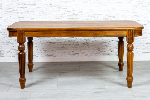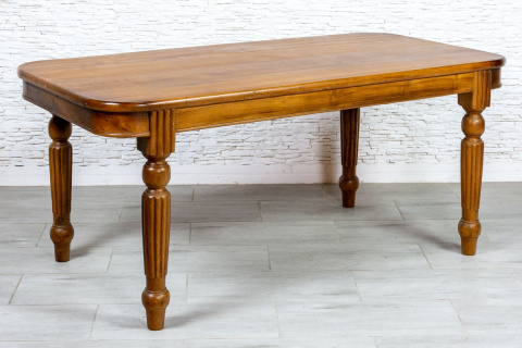 Nogi toczone w klasycznym, lekko pałacowym stylu, blat z ładnie wyoblonymi rogami, całość wybarwiona na odcień ciepłego, miodowego brązu. Stół idealny do stylowej, eleganckiej jadalni. Polecamy do wnętrz klasycznych i kolonialnych. Przy stole usiądzie wygodnie sześć osób.