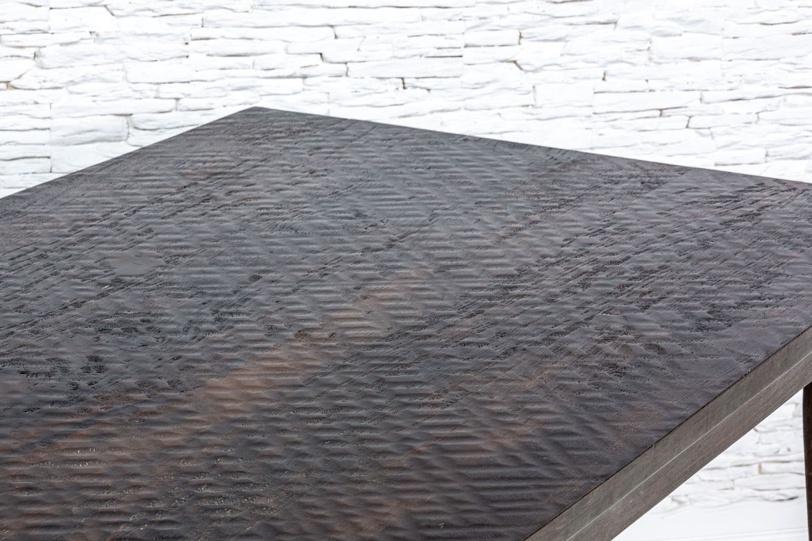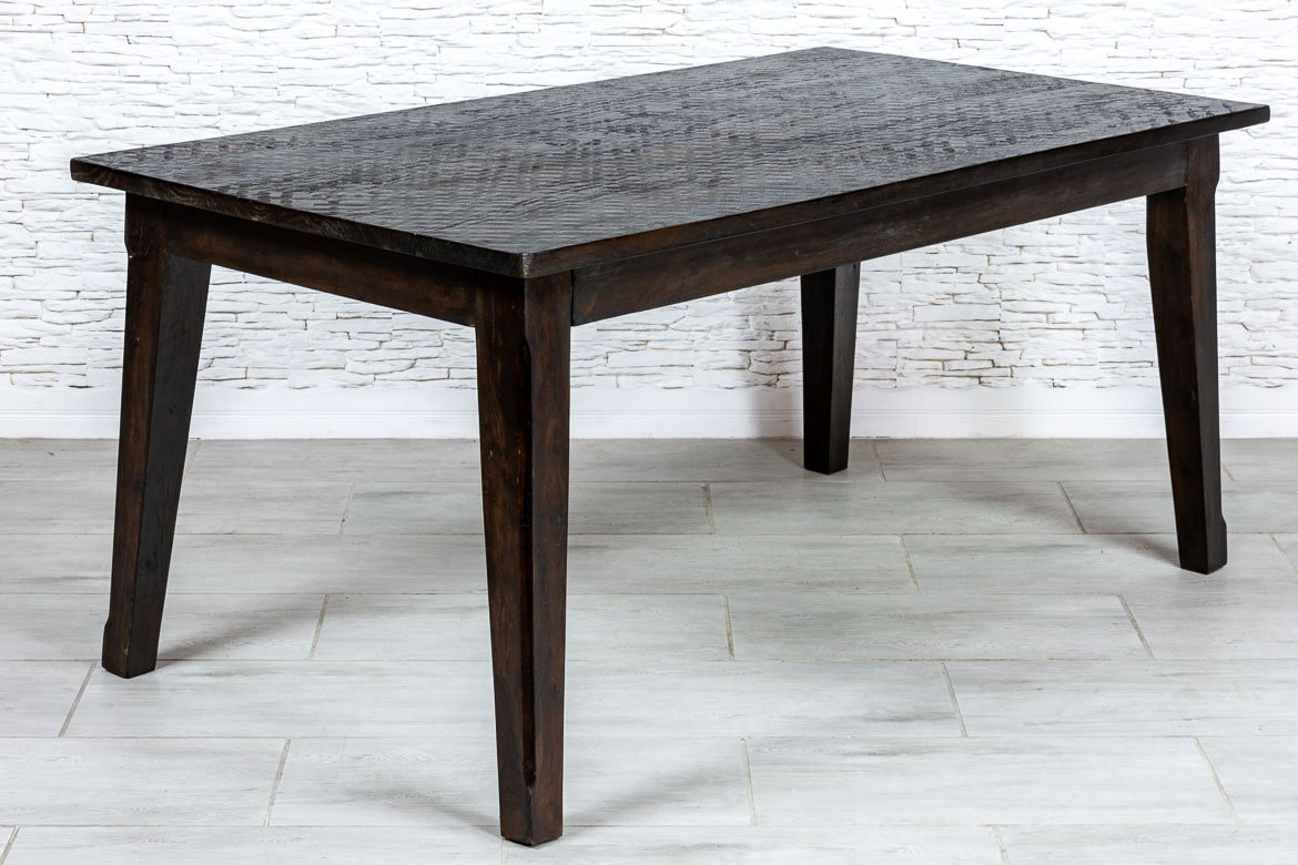 Prostokątny stół drewniany z Indii, wykonany z akacji azjatyckiej. Blat ręcznie dłubany, lekko wygięte nogi są odkręcane i łatwo demontowalne. Stół idealny do stylowej kuchni lub niewielkiej jadalni. Polecamy do wnętrz orientalnych i kolonialnych. Przy stole usiądzie wygodnie sześć osób.