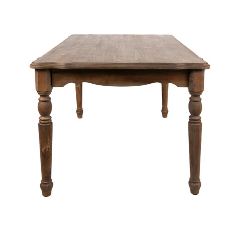Ten wyjątkowy stół zaprojektowała marka Clayre & Eef, która umiejętnie połączyła zamiłowanie do naturalnych surowców z ponadczasową klasyką i rustykalnym charakterem. Toczone nogi pięknie komponują się z falistym blatem tego wyjątkowego stołu. Mebel odnajdzie się w klimatycznym wnętrzu w stylu country, vintage, rustykalnym bądź farmhouse.