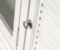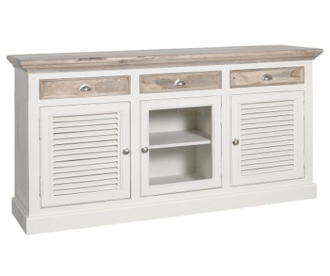 Mebel dedykowany jasnym, przestronnym wnętrzom. Odnajdzie się zarówno w salonie jak i słonecznej jadalni. Posiada trzy szufladki i trzy pojemne schowki — dwa ukryte za pięknymi, ażurowymi frontami i jeden przeszklony na środku.