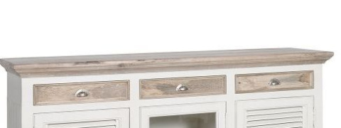 Ten niezwykły mebel zachwyca stylem, jakością wykonania i funkcjonalnością. Wysokiej klasy surowce, których użyto do produkcji komody, sprawiają, że robi ona niezwykłe wrażenie. Jest dopracowana w każdym calu. Przepiękny odcień naturalnego drewna połączony z antyczną bielą, to ponadczasowe zestawienie, które pokocha każdy wielbiciel stylu prowansalskiego lub hampton.