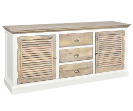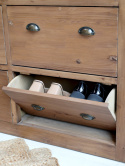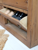 Szeroka, drewniana komoda na buty, stworzona przez projektantów znanej marki Chic Antique.