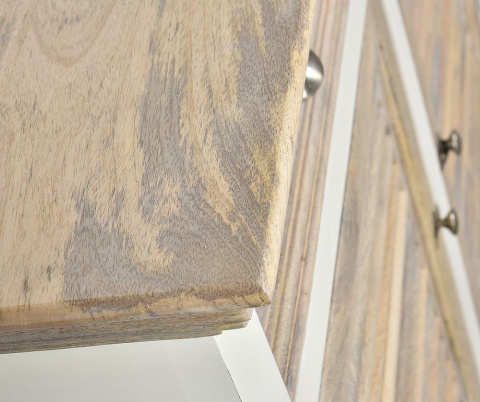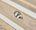 Ten niezwykły mebel zachwyca stylem, jakością wykonania i funkcjonalnością. Wysokiej klasy surowce, których użyto do produkcji komody sprawiają, że robi ona niezwykłe wrażenie. Jest dopracowana w każdym calu. Przepiękny odcień naturalnego drewna połączony z bielą, to ponadczasowe zestawienie, które pokocha każdy wielbiciel stylu prowansalskiego lub hampton.