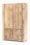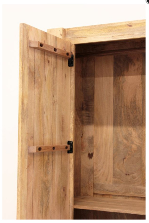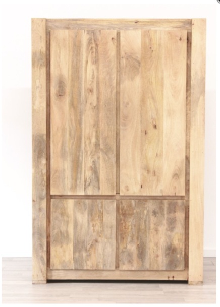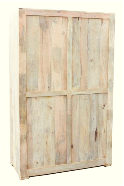Ten masywny mebel został wykonany w małej manufakturze w Indiach. Do jego produkcji użyto egzotycznego drewna mango w jego naturalnym odcieniu. Szafa wykończona wodnym lakierem matowym. W tym meblu wszystko zostało wykonane z litej deski (fronty, półki jak również plecy mebla).