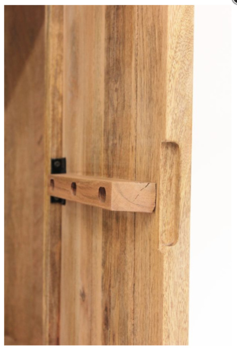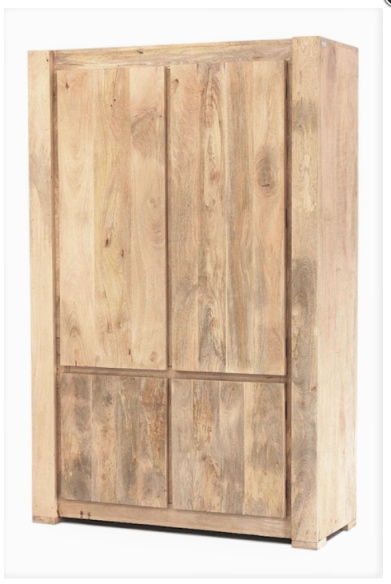 Ta głęboka szafa z drewna mango jest podzielona na dwie części.