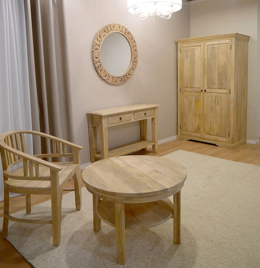 Meble indyjskie z jasnego drewna mango do przedpokoju.