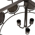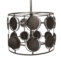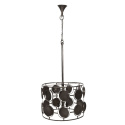 Wykonana została z metalu i wybarwiona na odcień antycznego brązu. Dzięki ażurom lampa pięknie odbija światło i tworzy wyjątkowe cienie na powierzchni ścian. Okrągłe ozdobniki dodają jej oryginalnego charakteru. Ta wyjątkowa lampa wspaniale sprawdzi się w wysokim przestronnym wnętrzu. Odnajdzie się także nad dużym stołem. Polecamy szczególnie do wnętrz w stylu nowoczesnym lub industrialnym.
