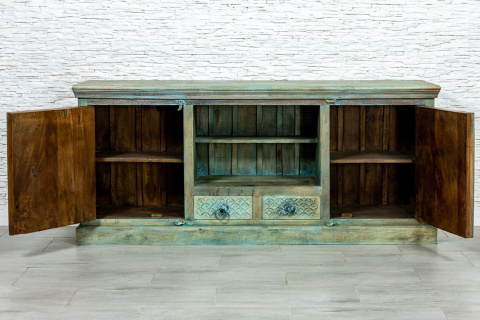 Duża turkusowa komoda RTV w stylu orientalnym