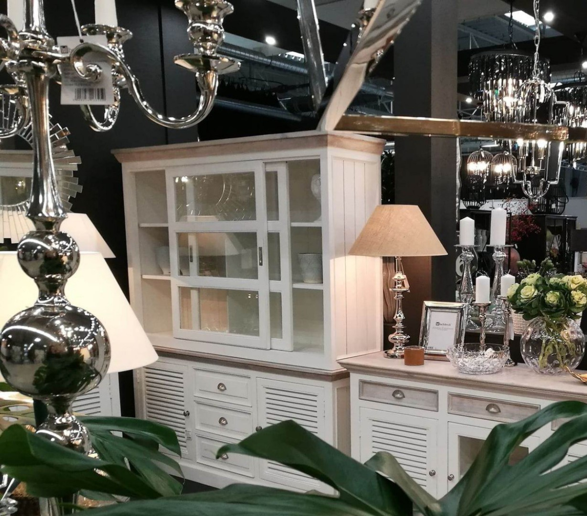 Duży biały przeszklony kredens hampton Belldeco