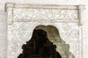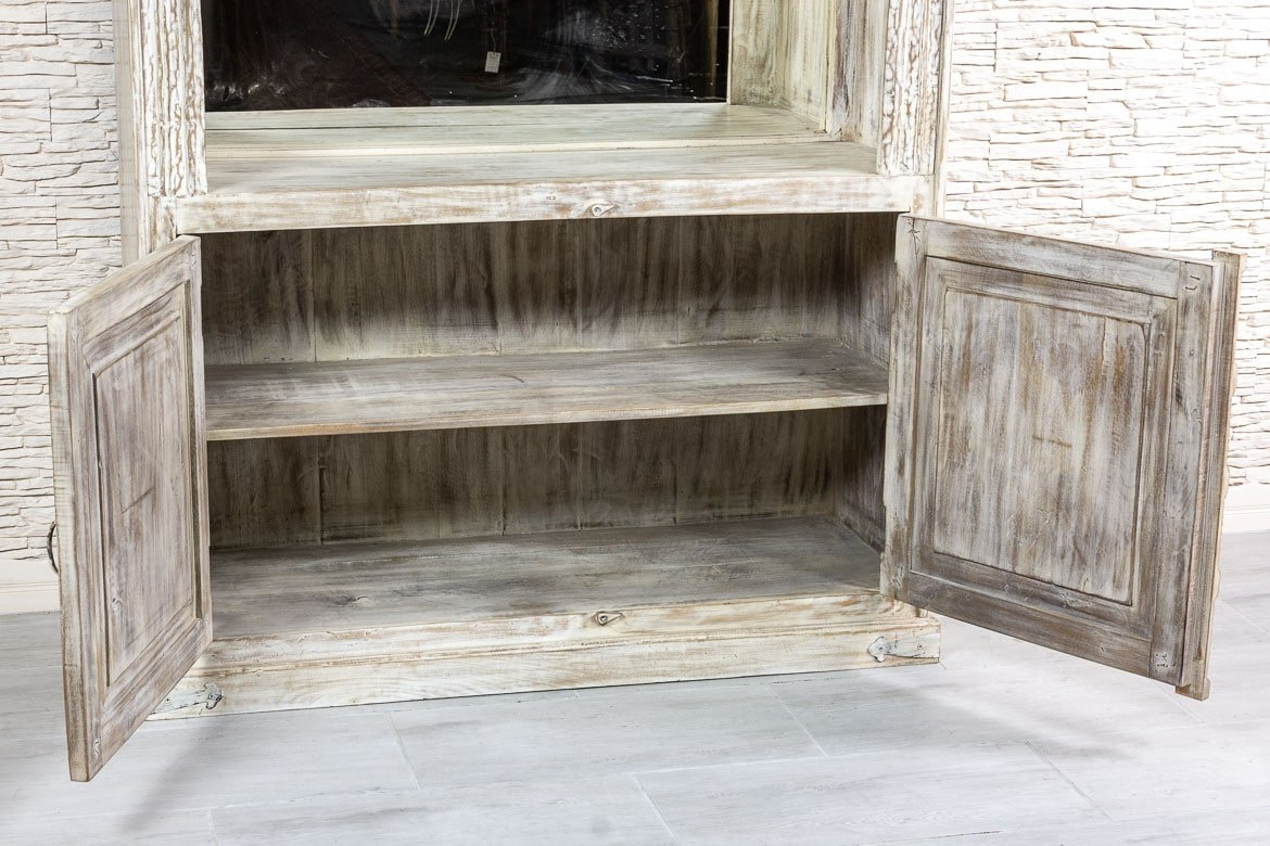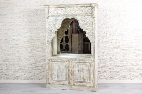 Wysoki, bielony kredens indyjski z lustrem w stylu orientalnym.