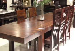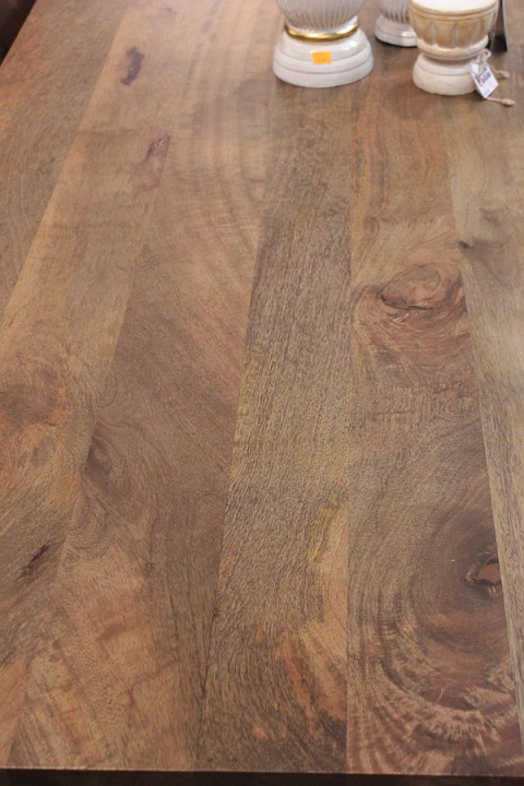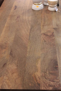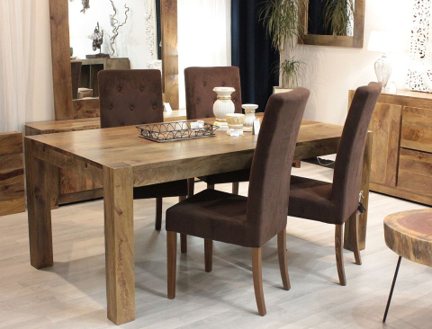 Stół w stylu kolonialnym, o neutralnym, ponadczasowym wyglądzie. Cechuje go prosta, solidna konstrukcja i wysoka jakość wykonania. Stół zrobiony z wyselekcjonowanego, egzotycznego drewna mangowca indyjskiego, którego piękno wydobyto dzięki zastosowaniu tradycyjnych indyjskich technik stolarskich.