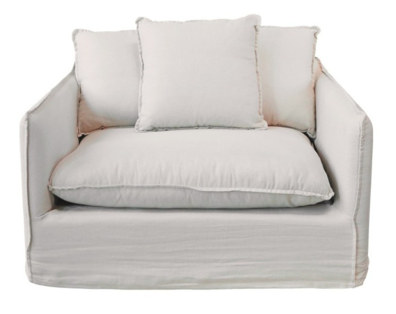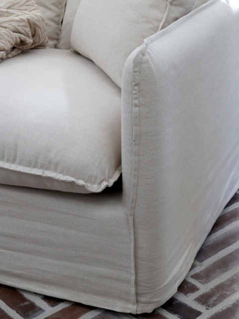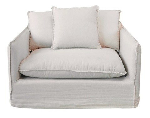 Szeroki, lniany fotel z poduchami z serii MALO marki Chic Antique.