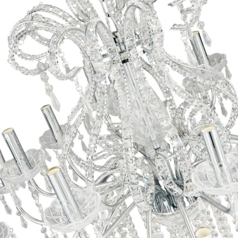 Żyrandol jest niezwykle dekoracyjny i ciężko przejść obok niego obojętnie. Posiada aż osiemnaście źródeł światła dlatego pięknie doświetli nawet bardzo duże pomieszczenie. Polecamy szczególnie do eleganckich, wysmakowanych wnętrz. Także do luksusowych hoteli, restauracji i salonów spa i sali balowych.