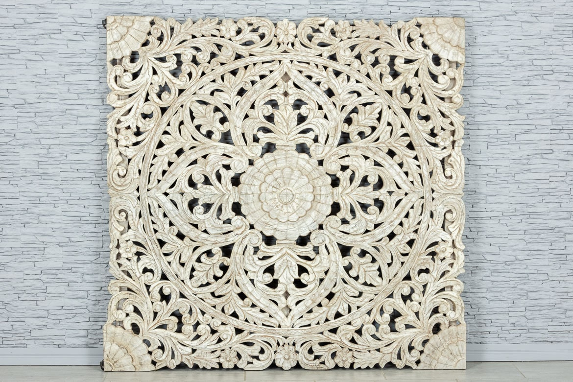 Duży, orientalny, biały panel dekoracyjny na ścianę z przepiękną mandalą.
