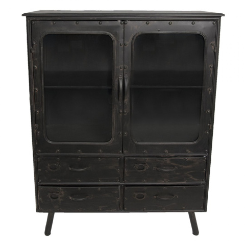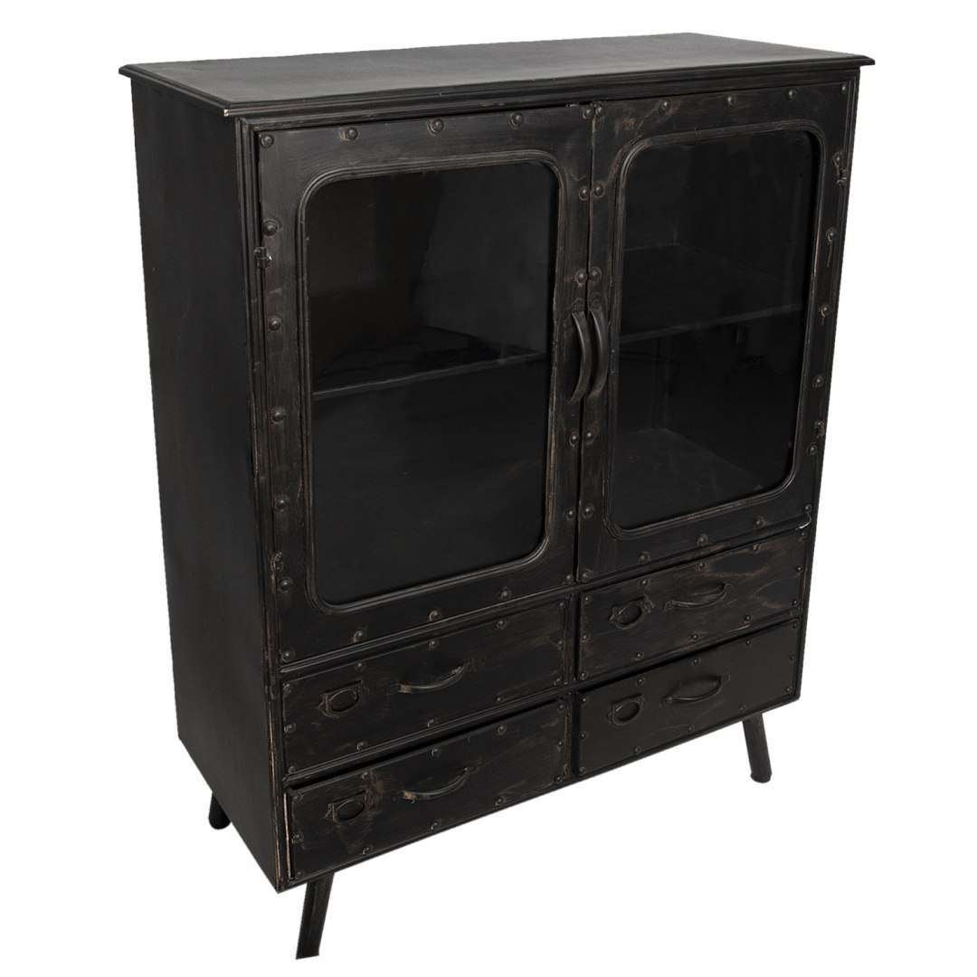 Metalowa, czarna witryna industrialna na nóżkach, zaprojektowana przez markę Clayre & Eef.