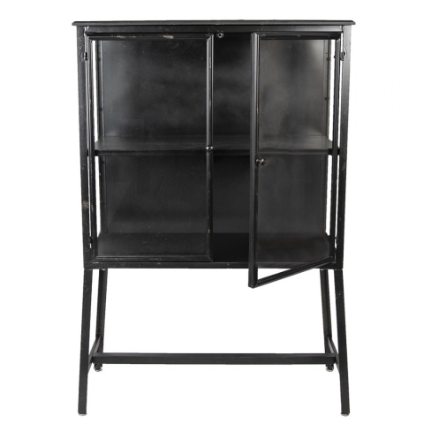 Mała metalowa witryna industrialna osadzona na wysokim stelażu od Clayre & Eef.