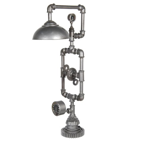 Niezwykle oryginalny projekt marki Clayre & Eef inspirowany instalacją hydrauliczną. Ta designerska lampa podłogowa wykonana została z metalowych rurek i urozmaicona licznikami wody i ciśnienia, a także trybami mechanicznymi. Jej warsztatowy charakter z pewnością przypadnie do gustu miłośnikom stylu loft/industrial. Ta wyjątkowa lampa odnajdzie się w salonie lub sypialni utrzymanej w surowym fabrycznym klimacie. Zagra również z orientalnymi meblami i akcesoriami.