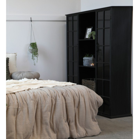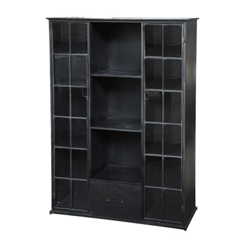 Regał posiada trzy wysokie półki, dolną, głęboką szufladę i dwie duże, przeszklone witryny. Ze względu na swoją konstrukcję jest meblem o uniwersalnym zastosowaniu. Może być idealnym rozwiązaniem do przechowywania naczyń i ozdobnych przedmiotów w loftowej kuchni, może być regałem na książki, dekoracje i rośliny w designerskim salonie lub sypialni, a także pełnić funkcję organizera biurze czy pracowni w stylu skandynawskim bądź industrialnym.