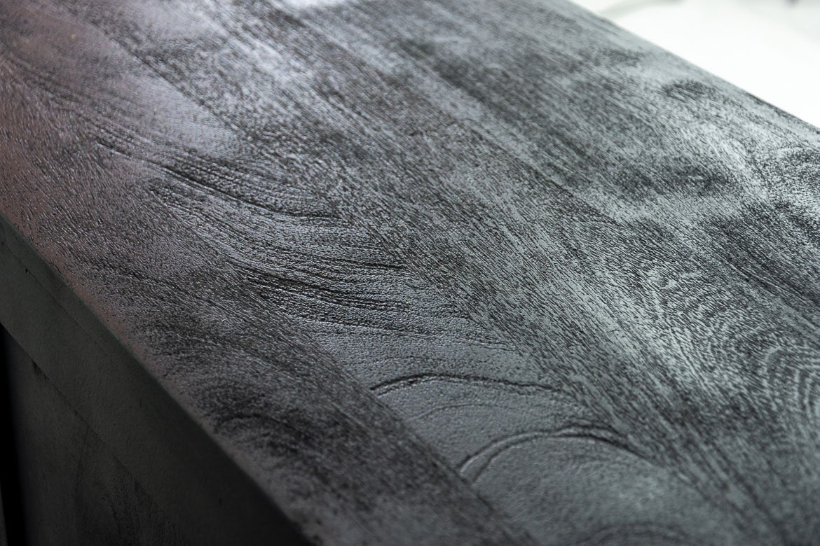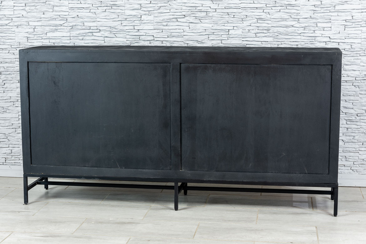 Indyjska drewniana czarna komoda na metalowych nóżkach z drewna mango.