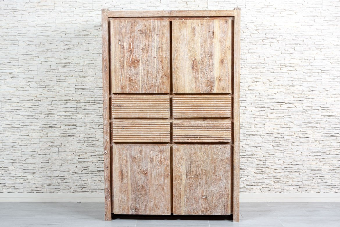 Głęboka szafa indyjska wykonana z drewna akacji indyjskiej i lekko bielona.