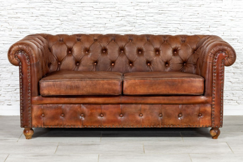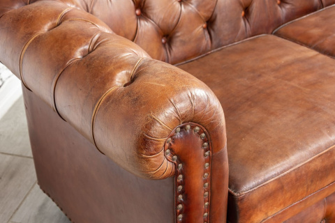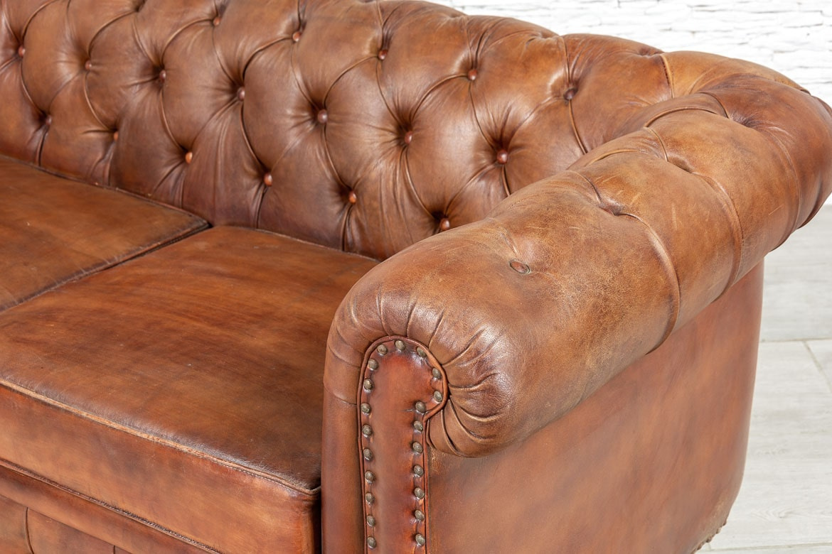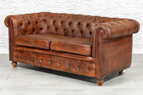 • Indyjska skórzana sofa pikowana Chesterfield