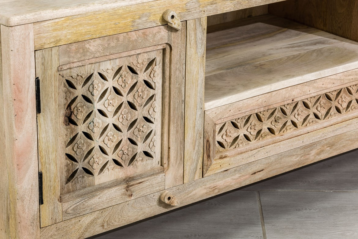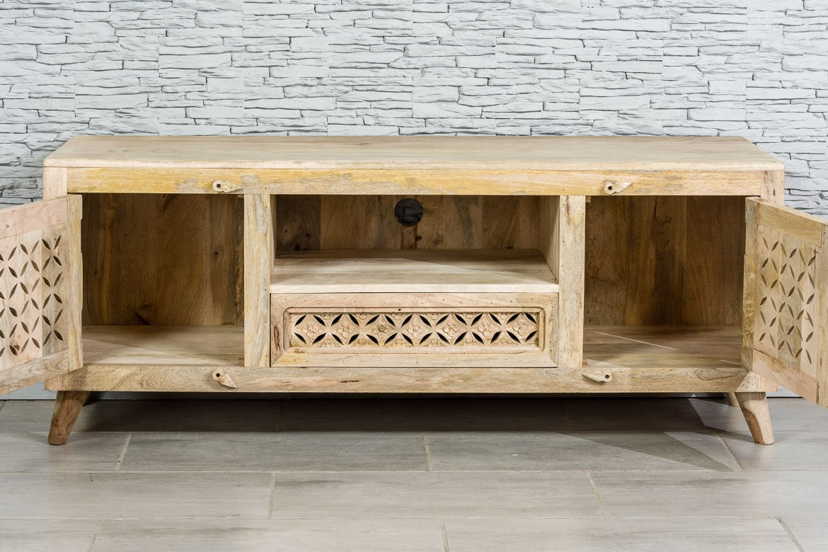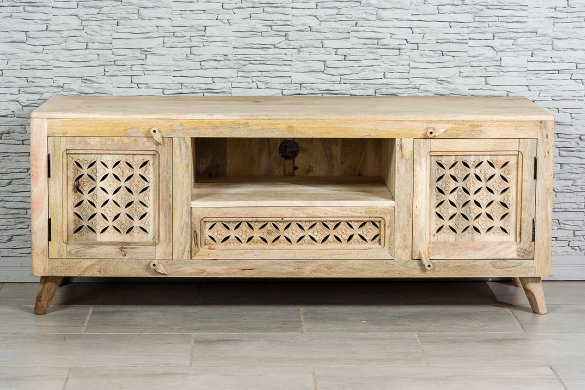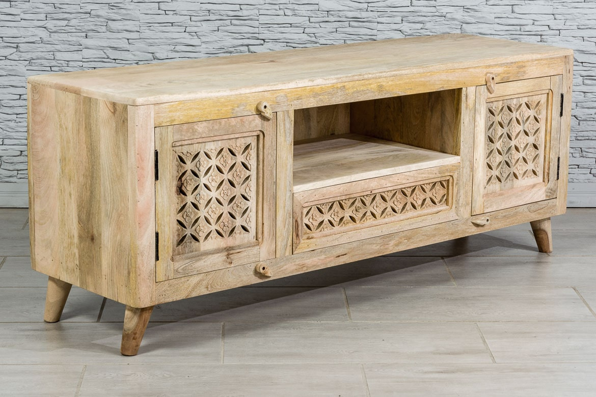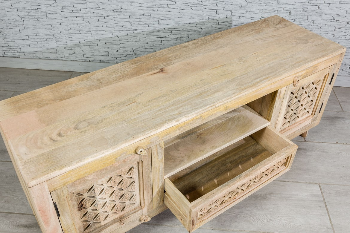 Indyjska szafka RTV na nóżkach 150 cm, surowe drewna mango.