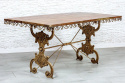 Oryginalny, duży stół z Indii na ozdobnej, żeliwnej podstawie.